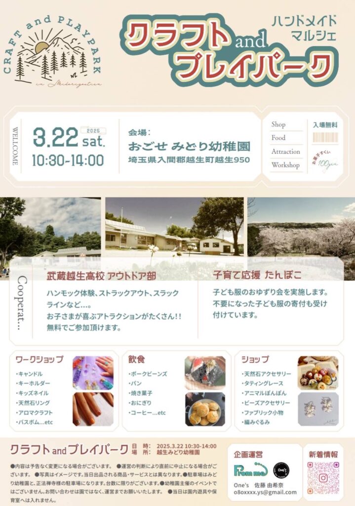 越生町の幼稚園で開催するこちらのマルシェ